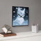 A clock with an adorable photograph of a white short-haired kitten with bright blue eyes. Staring off into the distance.