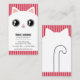Lovely Business Card designed with an original illustration of a cute white kawaii kitty cat face with big black shiny eyes. This is both side print where on the front side is the front side of a kitten, with its cute face and on the back side is the back side of a cat with its tail. All the contact information are on the front side of the Profile Card. The background is striped pink. Perfect profile card for a cat sitter as well as for vets or cat stylists.