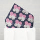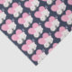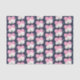 Tissue paper with an adorable graphic illustration. A white kitty cat with a cute paw print image on her fur. Sleeping peacefully. A big pink heart behind her and some little stars too. Dark blue background.