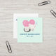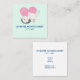 A business card with an adorable graphic illustration. A white kitty cat with a cute paw print image on her fur. Sleeping peacefully. A big pink heart behind her and some little stars too. Mint green background.