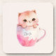 Cute White-Pink Cat in a Tea Cup (2) Coaster