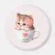 Cute White-Pink Cat in a Tea Cup (2) Magnet