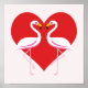 Cute White Pink Flamingos with Red Heart Poster