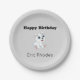 Cute white polar bear on grey birthday paper plate
