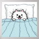 Adorable white Pomeranian tucked into bed. Cute wall art for Pom lovers. ©Jenn Kay