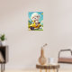 Cute White Puppy Dog riding a yellow scooter Art Poster
