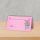 This folded standing place card for your parties, events, and weddings is vibrant pink with a cute white bunny rabbit giving a thumbs up sign and wearing a black bow tie. Customise the name and table number area and text on the back with the templates.