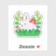 This cute white rabbit is sitting in a meadow of grass and flowers.