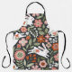 Cute white rabbits, floral vintage pattern. apron