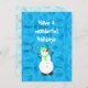 Vibrant colored letters, trees, holly and cancy canes in a cheerful message suitable for a non-religious holiday greeting. I especially liked it on the black background which made the design pop.
