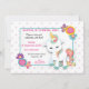 A cute white Unicorn, colourful flower illustrations and a pale pink polka dots background for your little daughter’s first birthday party invitations, with easy to personalise typography. You can also change text style and colour via the Click to Customise Further option if you so wish, as well as the pale green background colour on the reverse..