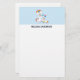 Stationery paper with a white mama unicorn with fancy colourful mane and tail. A baby unicorn laying down beside her, with a green pacifier in its mouth. A colourful rainbow with fluffy clouds, and some stars and heart decorate this sweet and adorable design. A bold pink outline surrounding the image gives it a child-like doodle vibe.