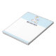 A notepad with a white mother unicorn with fancy colourful mane and tail. A baby unicorn laying down beside her, with a green pacifier in its mouth. A colourful rainbow with fluffy clouds, and some stars and heart decorate this sweet and adorable design. A bold pink outline surrounding the image gives it a child-like doodle vibe. Light blue border.