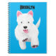 This happy running white west highland terrier dog is full of energy! Drawn in fun cartoon illustration style for kids and kids at heart.