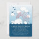 Customise this lovely stylish Couples Bring a Book 3,5" x 5" Request Insert Card, designed with three cute white whales in the blue ocean, two big parent whales and one small baby, parent whales are sprinkling showering the little one with red hearts.