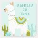 Cute Whole Llama Fun Aqua 1st Birthday Favour Square Sticker