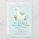 This sweet first birthday party invite features cute llama and aqua/green cactus illustrations on a pale aqua background with the phrase "a whole llama fun". The back has a pale aqua background with the same aqua/green cactus repeating pattern. You can further customise this design by adding a photo and/or additional text to the back... You can even remove the backer pattern and change the colour! This is the perfect invitation for a sweet first birthday!