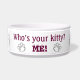 You'll love this funny and cute Who's Your Kitty cat bowl for your feline furry family member! The text is "Who's your kitty? ME!" The word "ME" has cute little eyeballs at the top. Cute little kitty cat paw prints go around the bowl.