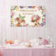 Cute little girl's birthday party custom banner with an adorable giraffe wearing a green bow and a baby tiger with a crown of flowers on her head. Personalised with your child's name for her birthday.
