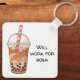 Cute Will Work For Boba Funny Boba Tea Lover Key Ring