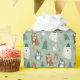 This cute wrapping paper features winter animals, wearing hats and scarves - you'll find polar bears, penguins, foxes, squirrels, and rabbits. Snowflakes, candy canes, Christmas trees, and gingerbread man cookies add a fun, whimsical touch. The background colour is mint green, but it can be customised to any colour you'd like. Perfect for gift giving this holiday season!