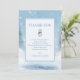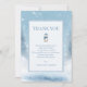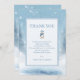 This elegant blue winter bear baby shower Thank you note features an adorable bear cub surrounded by a snowy winter background.