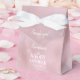 This pink winter bear baby shower thank you favour bag features an adorable bear cub surrounded by a snowy winter background. These cute paper favour boxes are sure to add a touch of whimsy to any baby shower.