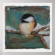 Cute Winter Black Capped Chickadee Poster. The design on this poster is of an adorable winter chickadee is a mixed media piece created using acrylics, paper and more. Perfect for the nature and bird lover! This artwork is also available on other products for mixing and matching! Art from Jenn Steffen.