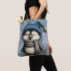 Cute Winter Blue Penguin With Hat And Scarf Tote Bag