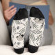 These socks feature hand-drawn illustrations in black ink of bunnies, leaves and flowers against a festive green background. Perfect stocking stuffer!