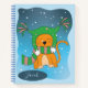 A cute blue spiral notebook for kids with the illustration of a ginger cat standing outside on a winter day . Personalise it with your child's name . Choose the type of paper you ant to use . It is currently set on sketch/handriting practice . Ideal for homeschooling :)