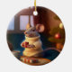 Cute Winter Mouse Drinking a tea Ceramic Ornament