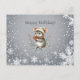 A cute grey mouse dressed for winter in a stocking cap and scarf holds berries and wishes you “Happy Holidays.” It is surrounded by a white snowflake design. The greeting can easily be changed to anything you prefer.