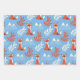 Cute Winter Orange Fox Mountains Leaf Pattern Wrapping Paper Sheet