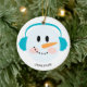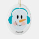 Cute Winter Personalised Snowman Face Christmas Ceramic Ornament. Design has hat and carrot nose snowman blue ear muffs. Great Christmas gift for family and friends.