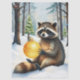 Sweet Christmas tissue paper with a sweet watercolor raccoon holding a gold ornament sitting in a snowy forest.