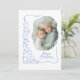 There’s something delightfully unexpected about this snowy white and soft blue Christmas holidays greeting photo card. It’s as if your holiday photo accidentally wandered into a tiny winter woodland… and all the little forest creatures decided, “Oh! We’re joining too.” A bunny, a fox, a deer, a bear — everyone showed up.