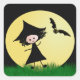Happy Halloween! Give out some cute stickers this Halloween! This kid-friendly image features a cute witch girl and her pet bat having fun in the light of the full moon.