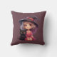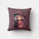 Cute Witch and Black Cat Plum Purple Halloween Cushion
