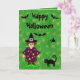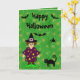 Cute Witch, Cat, Bats & Spider Halloween Card