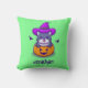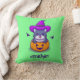 Cute Witch Cat Rising From Pumpkin Flying Bats Cushion