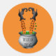 Halloween cute and funny witch perfect for your Halloween celebration featuring a witch upside down in a cauldron. Black and orange theme colours. Cute witch theme.