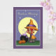 Adorable little toon witch Samhain Blessings Card! This cute card features a cute little witch girl making magic in the moonlight night with bubble cauldron and pumpkins... in front of a big yellow moon with stars background. Lovely purple, orange, and yellow colours.. Wonderful greeting card to send Samhain Sabbat wishes to anyone, including kids and young girls. For more witch and Samhain cards and gifts please visit our shop!
