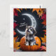 Cute Wolf with Crescent Moon Nighttime Autumn Scen Postcard