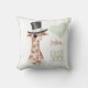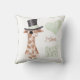 Sweet watercolor giraffe with green top hat and heart nursery pillow for boy or girl. Add name to personalise. Just adorable!