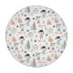 This folk art design features a cute Scandinavian inspired pattern including a small Indian boy and woodland animals.