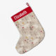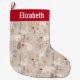 Christmas stocking personalised with a name. A cute Nordic style pattern. Winter pine trees, bears, reindeer and squirrels. Light brown colour.