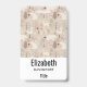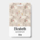 Personalised name badge with a cute Nordic style pattern. Winter pine trees, bears, reindeer and squirrels. Light brown colour.