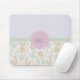 Mousepad with the bottom half decorated in a fun pattern illustrated with adorable foxes, cute little birds and whimsical green trees. The top half has a lavender purple background with a linen style texture. The centre has a pastel green banner with a pink circle over top which holds the recipient's name. I think this quaint children's / nursery style pattern is really cute and reminds me of the happy times spent in nature. I also find Tthe lavender colour to be calming and relaxing. Which is kinda great when you are sitting at a computer.