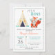 Cute Woodland Fox Boho Teepee Boy Baby Shower Invitation